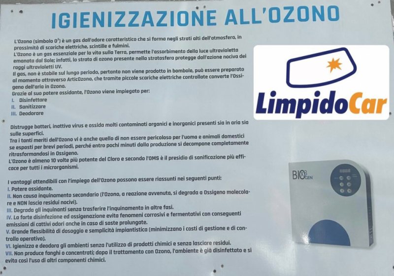 Omaggio lavaggio auto interno ed esterno con sanificazione all'ozono.